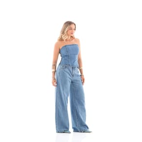 Pantalona Jeans Feminina Arauto Premium Denim - Azul Claro - 46