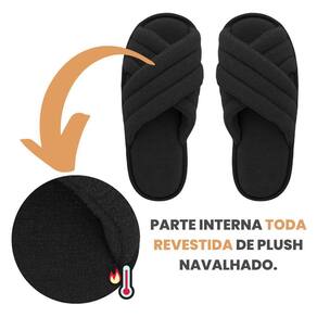 Pantufa Feminina Antiderrapante Chinelo de X 100% Poliéster - 45-46 - Preto