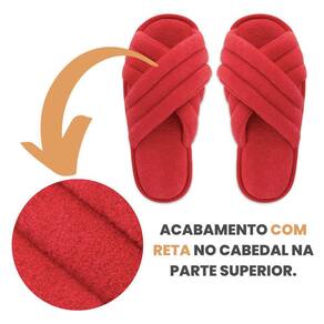Pantufa Feminina Antiderrapante Chinelo de X 100% Poliéster - 37/38 - Vermelho
