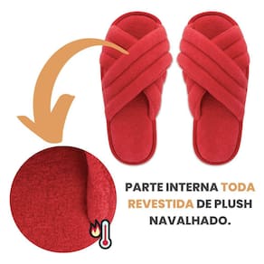 Pantufa Feminina Antiderrapante Chinelo de X 100% Poliéster - 45-46 - Vermelho