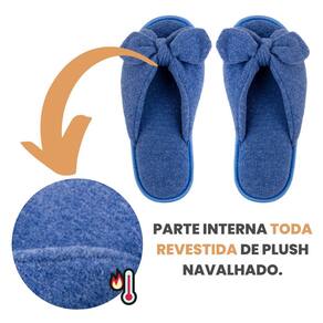 Pantufa Feminina Com Lacinho Chinelo de Quarto Antiderrapante - 37-38 - Azul turquesa