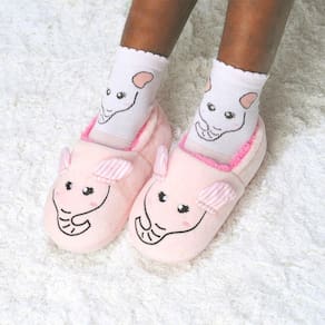 Pantufa para crianças da linha Play, quando os pequenos já estão brincando pela casa toda, super fofa e confortável, possuem também uma camada protetora para que os pés fiquem confortáveis e quentinhos. Possui solado antiderrapante.