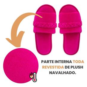 Pantufa Slide Antiderrapante Com Trança Adulto e Infantil - 33-34 - Rosa