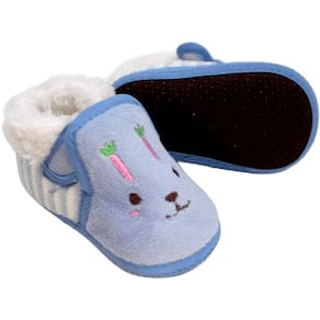 Pantufas Sapatinho Coelhinho Para Bebês Forrada com fecho aderente Azul - 0 a 12 Meses -