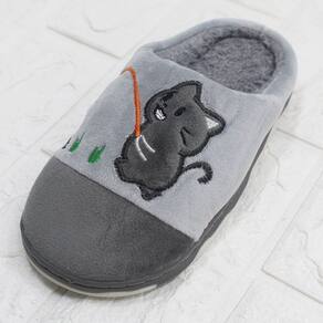 Pantufas Sapato Gatinho Pelúcia Chinelo De Inverno Infantil - 26-27 - Cinza