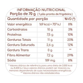 - Ingredientes: Farinha de Castanha de Caju, farinha de linhaça dourada, farinha de mandioca zaya e fermento quimico.