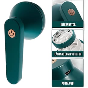 Remove fiapos, bolinhas e pelos de tecidos. Bateria interna recarregável via USB. Lâminas de aço inoxidável com grade protetora. Design ergonômico. Uso sem fio. Leve, silencioso e fácil de transportar. Seguro para todos os tipos de tecidos.Tipo