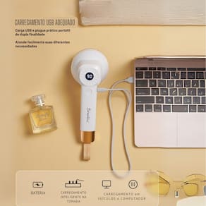 Funcionalidade: Remove fiapos, plumas e bolinhas de roupas Facilidade de Uso: Mude a velocidade com apenas um toque Alimentação: Cabo USB para carregamento (Bivolt) Medidor Digital: Indica o nível e a duração da bateria Estrutura: Reforçada Acessórios: Inclui escova para limpeza e alça de transporte Velocidades: Três velocidades ajustáveis