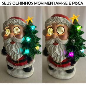 Papai Noel Arvore Natal Mesa Mexe Olhos Natalino Led Estante Musica Decoraçao Fim de Ano Festa Evento Comemoraçao