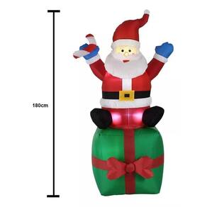 Produto Decorally Home Decor: Desenvolvido com qualidade e atenção aos detalhes, tornando sua decoração natalina especial. Design Divertido: Papai Noel Caixa de Presente traz uma atmosfera alegre e envolvente para sua decoração. Tamanho Ideal: Com 1,80m de altura, é perfeito para destacar qualquer espaço, seja em jardins, sacadas ou dentro de casa. Fácil Instalação: O inflador embutido garante montagem rápida e prática. Basta conectar à tomada e seu Papai Noel estará pronto para subir a escada Iluminação LED: Equipado com luzes LED, criando um efeito mágico e luminoso durante a noite.