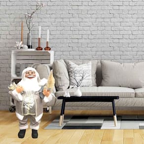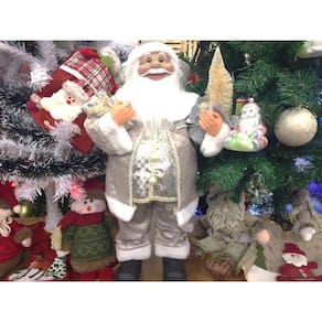 Por isso a Master Christmas trás até você um enfeite natalino, com as figuras do querido papai noel, este modelo Especial Luxo Com Casaco Cinza Perolado ainda possui 2 acessórios especiais, presente e Mini Pinheiro Nevado para deixar sua decoração ainda mais alegre e bonita.