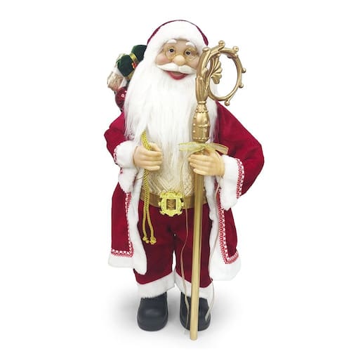 Envolva sua decoração de Natal com magia, tradição e elegância com o Boneco Papai Noel em Pé com Cajado 60cm.