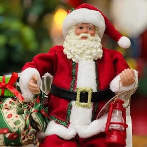 Esse encantador Papai Noel traz toda a magia do Natal em um momento de pausa e alegria. Sentado em um banco com presentes ao seu lado, ele transmite acolhimento e generosidade, perfeito para decorar aparadores, estantes ou o cantinho especial da sua casa durante as festas. Os detalhes delicados e o acabamento artesanal tornam essa peça única e cheia de charme natalino. Medidas: 28cm de altura Material: Tecido, poliresina, plástico e ferro Observação: Pode haver leve variação na cor da foto devido às configurações do seu monitor e luz.
