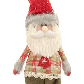Adicione o encanto clássico do Natal à sua decoração com este elegante Papai Noel decorativo, de 50cm de altura. Vestido em um charmoso traje em tons de verde e vermelho xadrez, ele traz o espírito natalino tradicional com um toque moderno. O gorrinho vermelho com guizo completa o visual, garantindo um detalhe alegre e sonoro para suas celebrações.