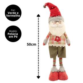Papai Noel Decorativo Em Pé Verde e Vermelho Xadrez Gorro com Guizo 50cm - Bela Flor