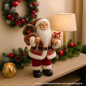 Perfeito para quem deseja uma decoração natalina acolhedora e elegante, com o charme clássico do Papai Noel tradicional.