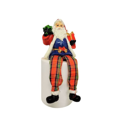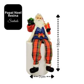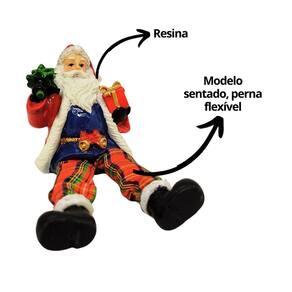 Papai Noel Decorativo Resina Sentado Calça Xadrez 18cm - Nataluz