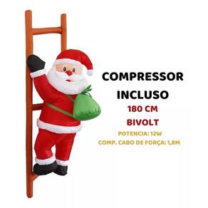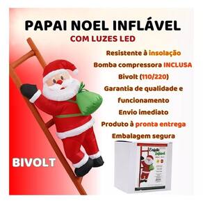 Produto Decorally Home Decor: Desenvolvido com qualidade e atenção aos detalhes, tornando sua decoração natalina especial. Design Divertido: Papai Noel escalando a escada traz uma atmosfera alegre e envolvente para sua decoração. Tamanho Ideal: Com 1,80m de altura, é perfeito para destacar qualquer espaço, seja em jardins, sacadas ou dentro de casa. Fácil Instalação: O inflador embutido garante montagem rápida e prática. Basta conectar à tomada e seu Papai Noel estará pronto para subir a escada Iluminação LED: Equipado com luzes LED, criando um efeito mágico e luminoso durante a noite.