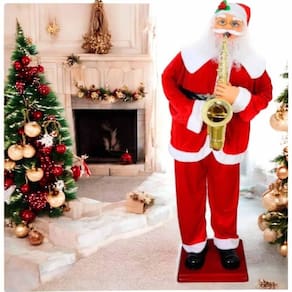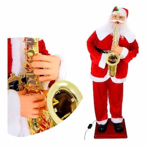 Presença Imponente: Com 1,30m de altura, este Papai Noel é uma figura que chama a atenção e enche o ambiente com a verdadeira essência do Natal. Talento Musical: Equipado com um saxofone, ele toca melodias envolventes que trazem alegria e espírito festivo, fazendo de cada momento uma celebração.