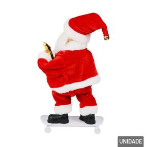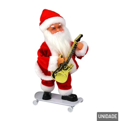 Papai Noel Musical 26cm á Pilha Movimento e Deixe o clima de Natal ainda mais encantador com este Papai Noel Musical de 23cm! Ao ser ligado, ele dança e toca músicas natalinas, trazendo alegria e diversão para toda a família. Ideal para decorar ambientes, presentear ou animar festas de fim de ano.\nUtiliza: 3 Pilhas AA (não inclusas).\nEspecificações:\nMarca : D L FESTA\nTipo de material : Plástico\nCores ou Estampa : Branco, Vermelho e Preto\nDimensões do Produto : 26 X 16 X 10 CM\nDimensões da Embalagem : 27 X 16 X 12 CM\nPeso Bruto (Gramas) : 0.343
