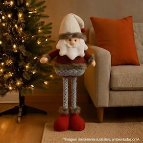 Leve para sua casa o Papai Noel Pelúcia Retrátil Vinho e Cinza, um detalhe que vai transformar sua decoração de Natal com praticidade e elegância.