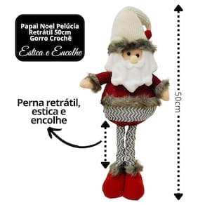 Papai Noel Pelúcia Retrátil com Pernas Extensíveis – 36cm até 50cm