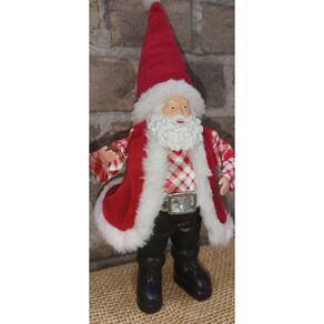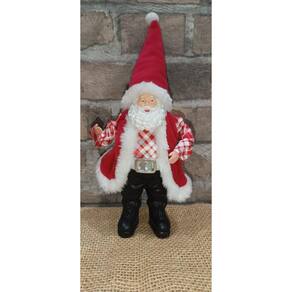 Descrição do Produto: Papai Noel Pequeno Vermelho Xadrez de Tecido - 15cm