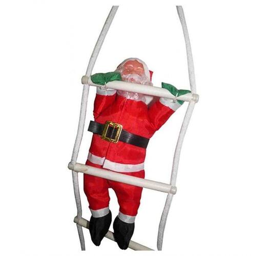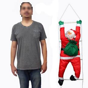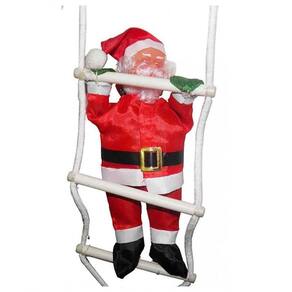 Enfeite especial para que o seu natal seja mágico e cheio de alegria. Papai Noel com vestimentas em nylon, preenchimento em espuma, material da escada com produto semelhante ao algodão e os degraus em plástico. Diversão garantida para o seu natal, tenha uma noite inesquecível.