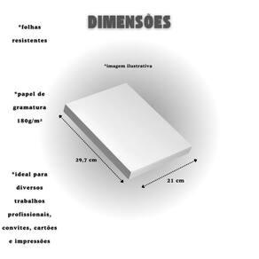 Papel especial econômico para diversos tipos de trabalhos, impressões, convites, certificados, artesanato e mais! Gramatura grossa de 180g/m² que garante mais resistência e durabilidade, tamanho A4 e 50 folhas. Disponível em , escolha o seu.