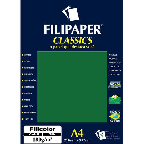 Papel A4 Color Filicolor Verde 180G. É um papel multiuso no formato A4 com cores intensas e vibrantes. Produto 100% alcalino acid free , não possui alvejante óptico e contém 30% de carga mineral adicionadas as fibras recicladas utilizadas na fabricação do papel em a celulo e, ou seja, o respeito ao meio ambiente inicia-se na constituição do papel. Marca: Não Informado Ean: 7891634034454