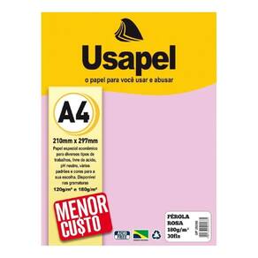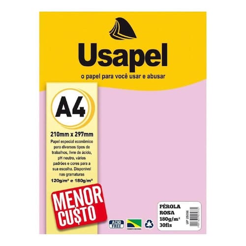- Papel Especial econômico para diversos tipos de trabalhos, livre de ácido, pH neutro, vários padrões e cores para a sua escolha. - Papel Pérola A4 - Cor: Rosa - Medidas: 210mm x 297mm - Pacote com 30 folhas - Gramatura: 180g/m2 - Marca: Usapel