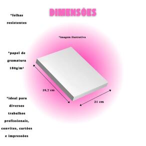 É um papel perolado, multiuso no formato A4, na gramatura 180g/m², ideal para elaboração de convites, lembranças, cardápios, embalagens e outros.