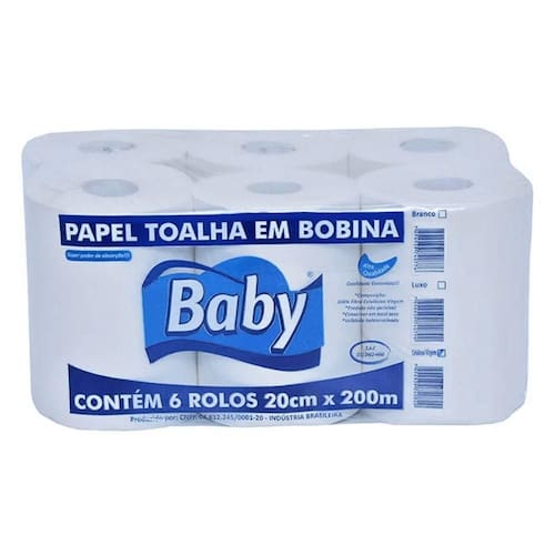 Papel Toalha bobina 100% celulose Baby 6 rolos de 200m