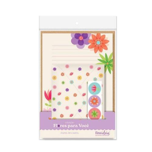 Embalagem com quatro folhas de papel de carta estampado, formato 15, 5 cm x 23 cm, papel offset 90 g/m2. Acompanham quatro envelopes estampados, em papel offset 120 g/m2 e quatro adesivos fofinhos. Um mimo!