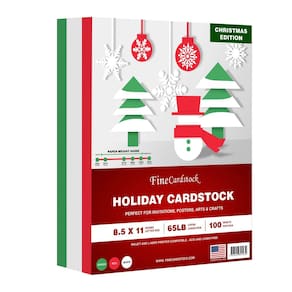 Este conjunto de cartolina festiva de 100 folhas é composto das cores tradicionais de Natal, verde e branco. Existem 25 folhas vermelhas, 25 verdes e 50 brancas, cada uma mede 21 x 28 cm.
