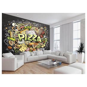 A impressão é feita em vinil adesivo. É um material lavável, impermeável, autocolante e antimofo. O produto cobre uma área de 3,50m, contando com 1,75 metro de altura por 2 metros de largura.