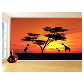 Papel De Parede 3D Animais Girafas Por Do Sol 3,5M Anm549