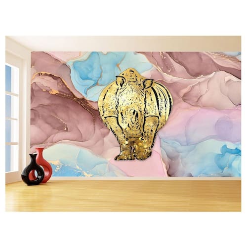 Papel De Parede 3D Animais Pop Art Rinoceronte 3,5M Pxa489