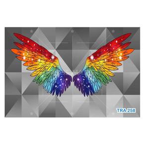 A impressão é feita em vinil adesivo. É um material lavável, impermeável, autocolante e antimofo. O produto cobre uma área de 3,50m, contando com 1,75 metro de altura por 2 metros de largura.