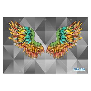 A impressão é feita em vinil adesivo. É um material lavável, impermeável, autocolante e antimofo. O produto cobre uma área de 3,50m, contando com 1,75 metro de altura por 2 metros de largura.