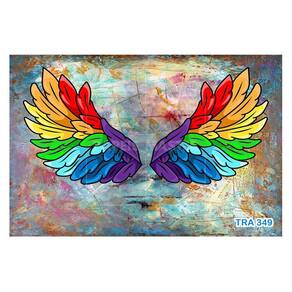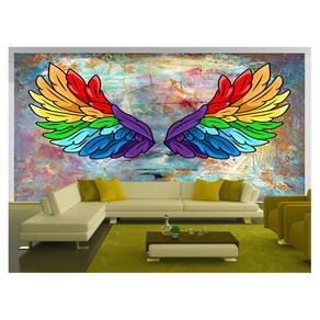 A impressão é feita em vinil adesivo. É um material lavável, impermeável, autocolante e antimofo. O produto cobre uma área de 3,50m, contando com 1,75 metro de altura por 2 metros de largura.