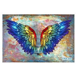 A impressão é feita em vinil adesivo. É um material lavável, impermeável, autocolante e antimofo. O produto cobre uma área de 3,50m, contando com 1,75 metro de altura por 2 metros de largura.