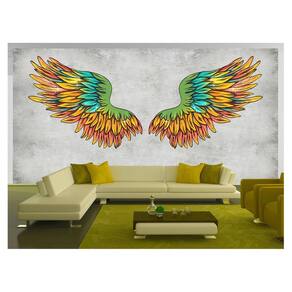 A impressão é feita em vinil adesivo. É um material lavável, impermeável, autocolante e antimofo. O produto cobre uma área de 3,50m, contando com 1,75 metro de altura por 2 metros de largura.