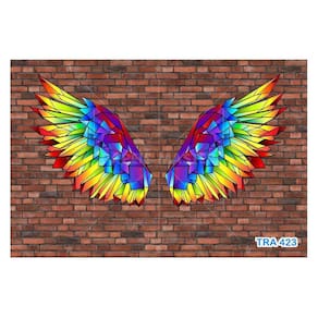 A impressão é feita em vinil adesivo. É um material lavável, impermeável, autocolante e antimofo. O produto cobre uma área de 3,50m, contando com 1,75 metro de altura por 2 metros de largura.