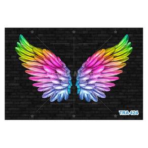 A impressão é feita em vinil adesivo. É um material lavável, impermeável, autocolante e antimofo. O produto cobre uma área de 3,50m, contando com 1,75 metro de altura por 2 metros de largura.