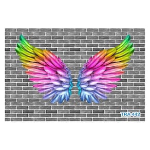 A impressão é feita em vinil adesivo. É um material lavável, impermeável, autocolante e antimofo. O produto cobre uma área de 3,50m, contando com 1,75 metro de altura por 2 metros de largura.