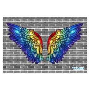 A impressão é feita em vinil adesivo. É um material lavável, impermeável, autocolante e antimofo. O produto cobre uma área de 3,50m, contando com 1,75 metro de altura por 2 metros de largura.