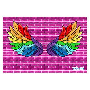 A impressão é feita em vinil adesivo. É um material lavável, impermeável, autocolante e antimofo. O produto cobre uma área de 3,50m, contando com 1,75 metro de altura por 2 metros de largura.