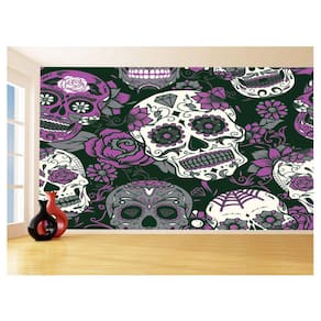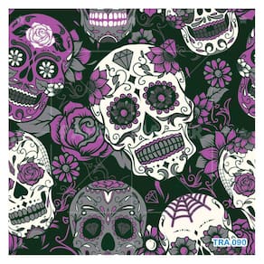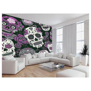 Papel De Parede 3D Arte Caveiras Mexicanas Flor 3,5M Tra90