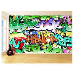 A impressão é feita em vinil adesivo. É um material lavável, impermeável, autocolante e antimofo. O produto cobre uma área de 3,50m, contando com 1,75 metro de altura por 2 metros de largura.